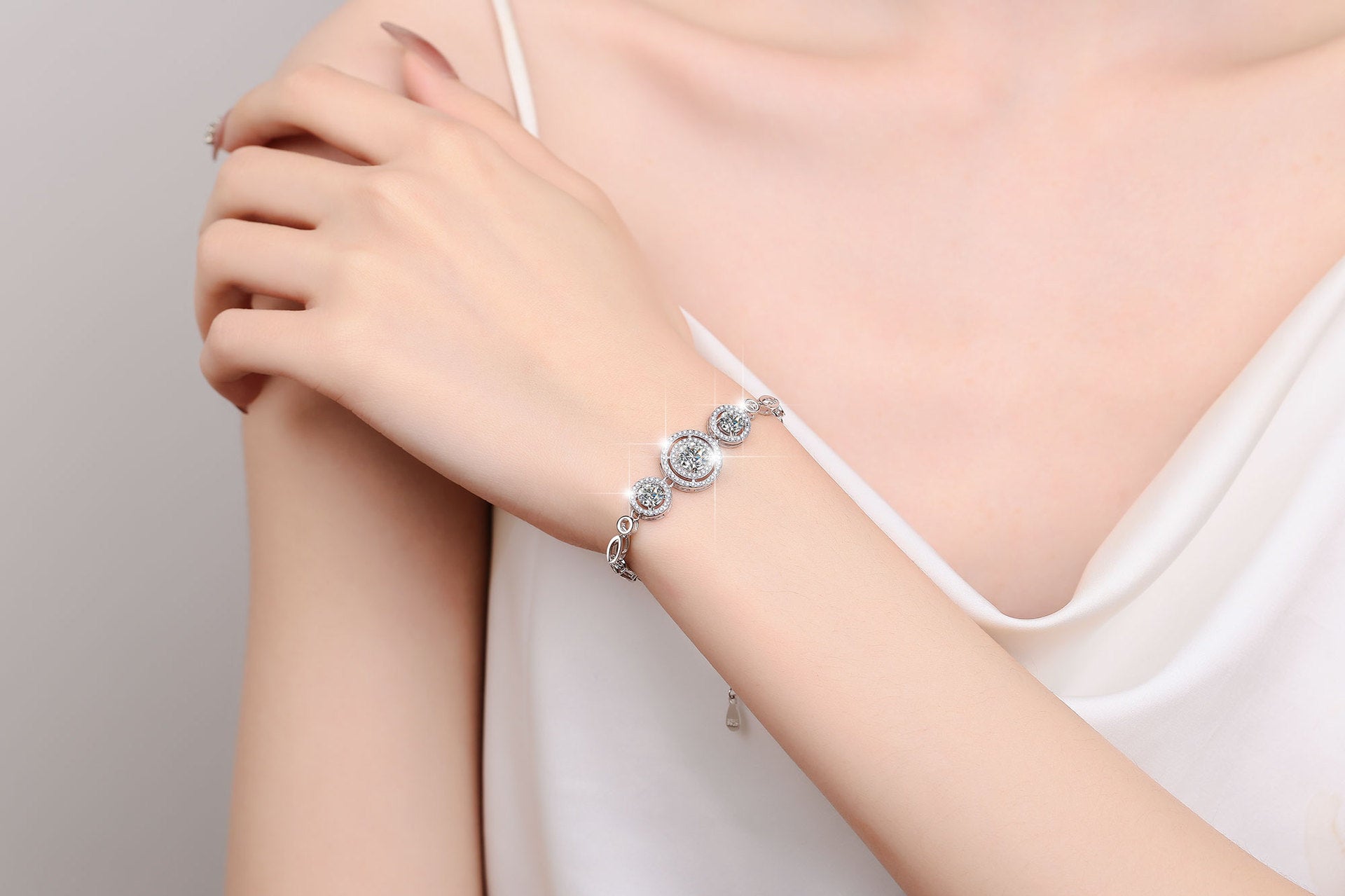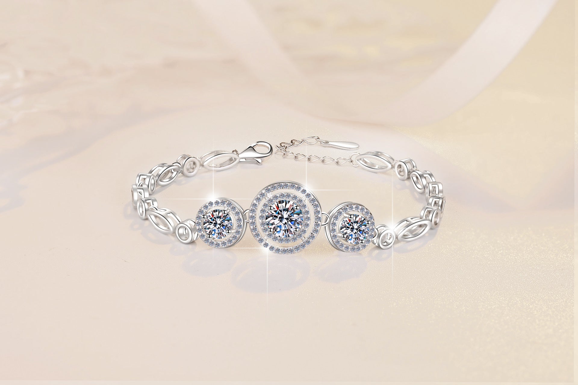 S925 Sterling Silver Women's Bracelet Round Fashion Cross-Border Source Manufacturer Wholesale Moissanite Bracelet GRA