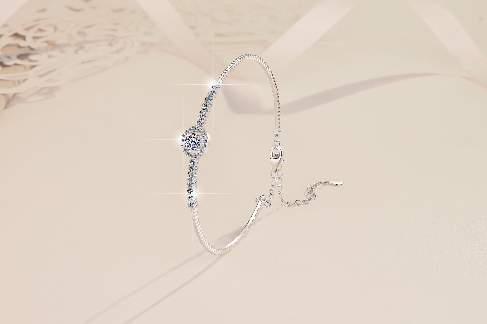Moissanite Bracelet Plated PT950 Round Gra Elegant Live Streaming Manufacturer Wholesale Cross-Border Bracelet S925 Sterling Silver Bangle