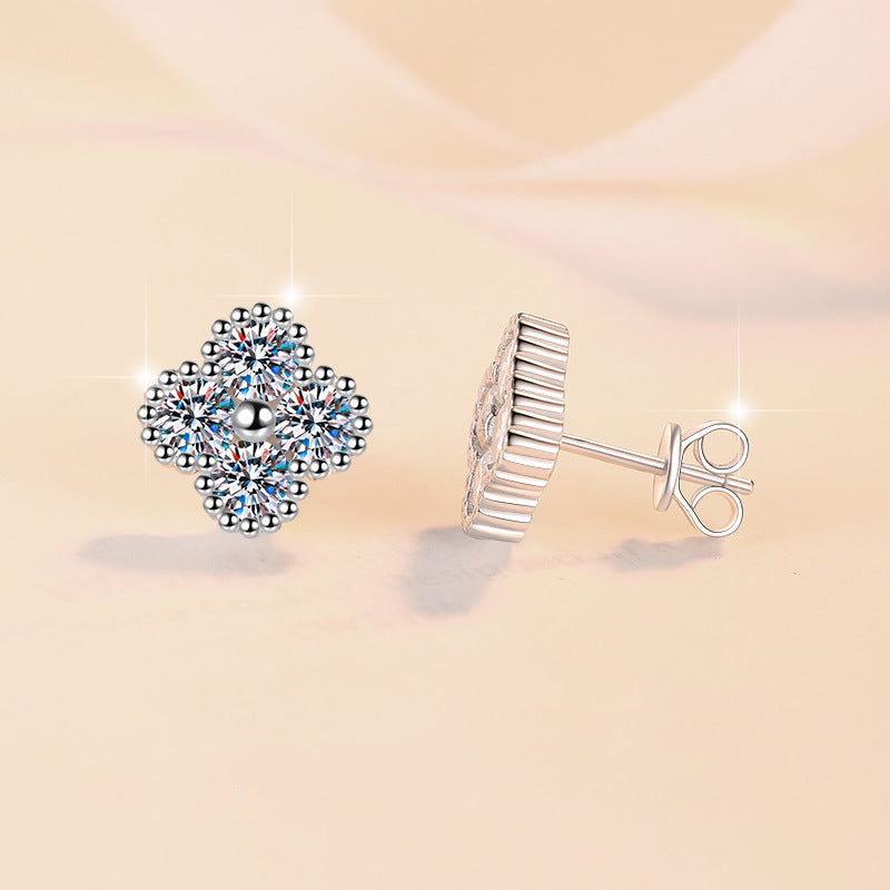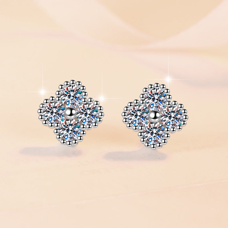S925 Sterling Silver Earrings Four-Leaf Clover Inlaid with Moissanite Light Luxury Fashion Jewelry Moissanite Earrings for Women