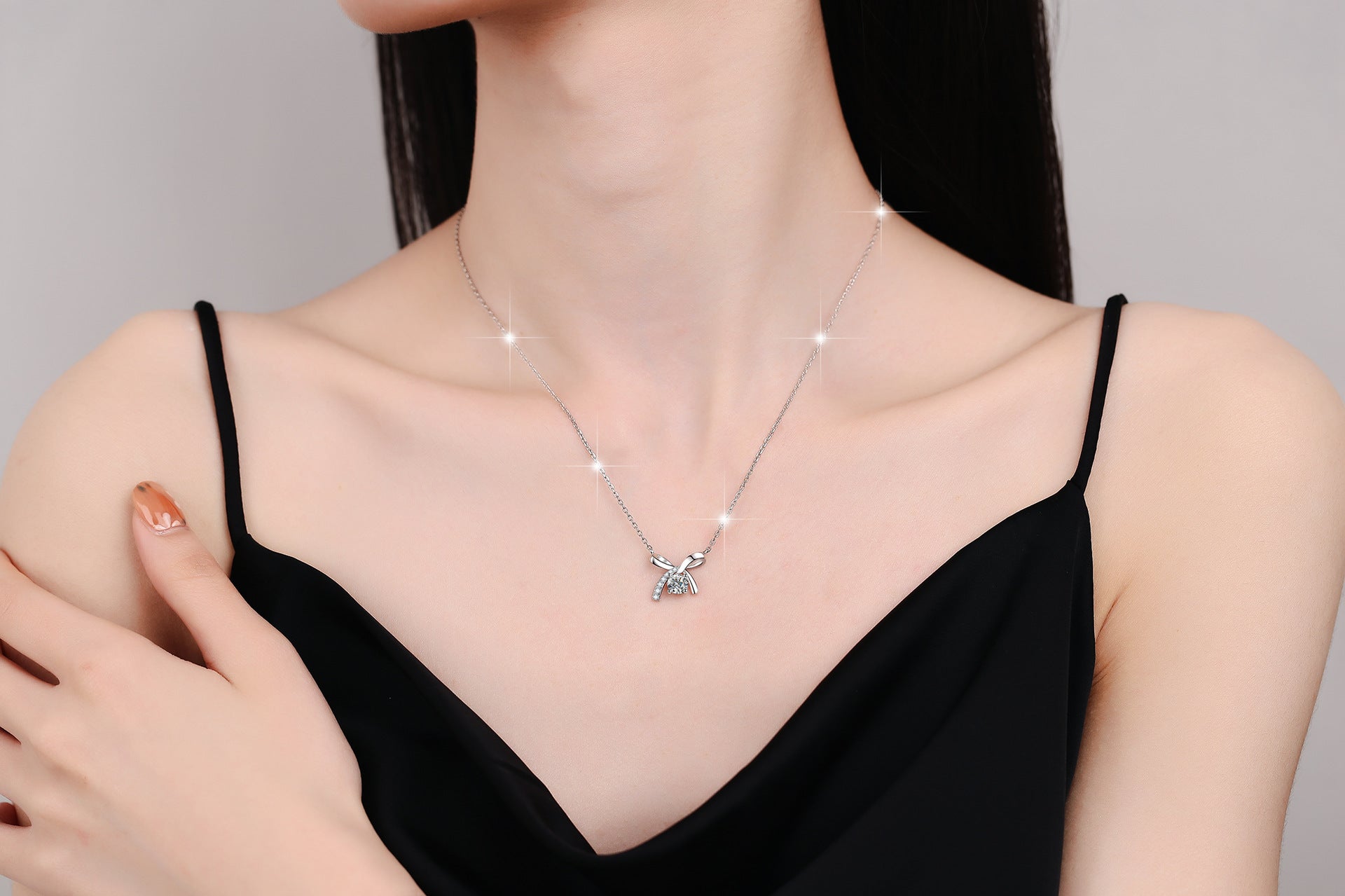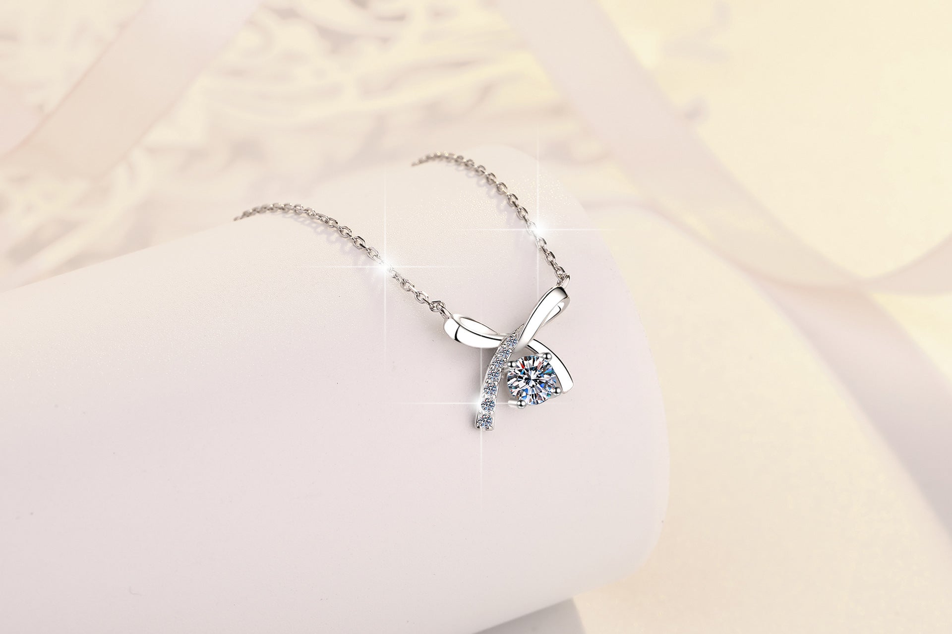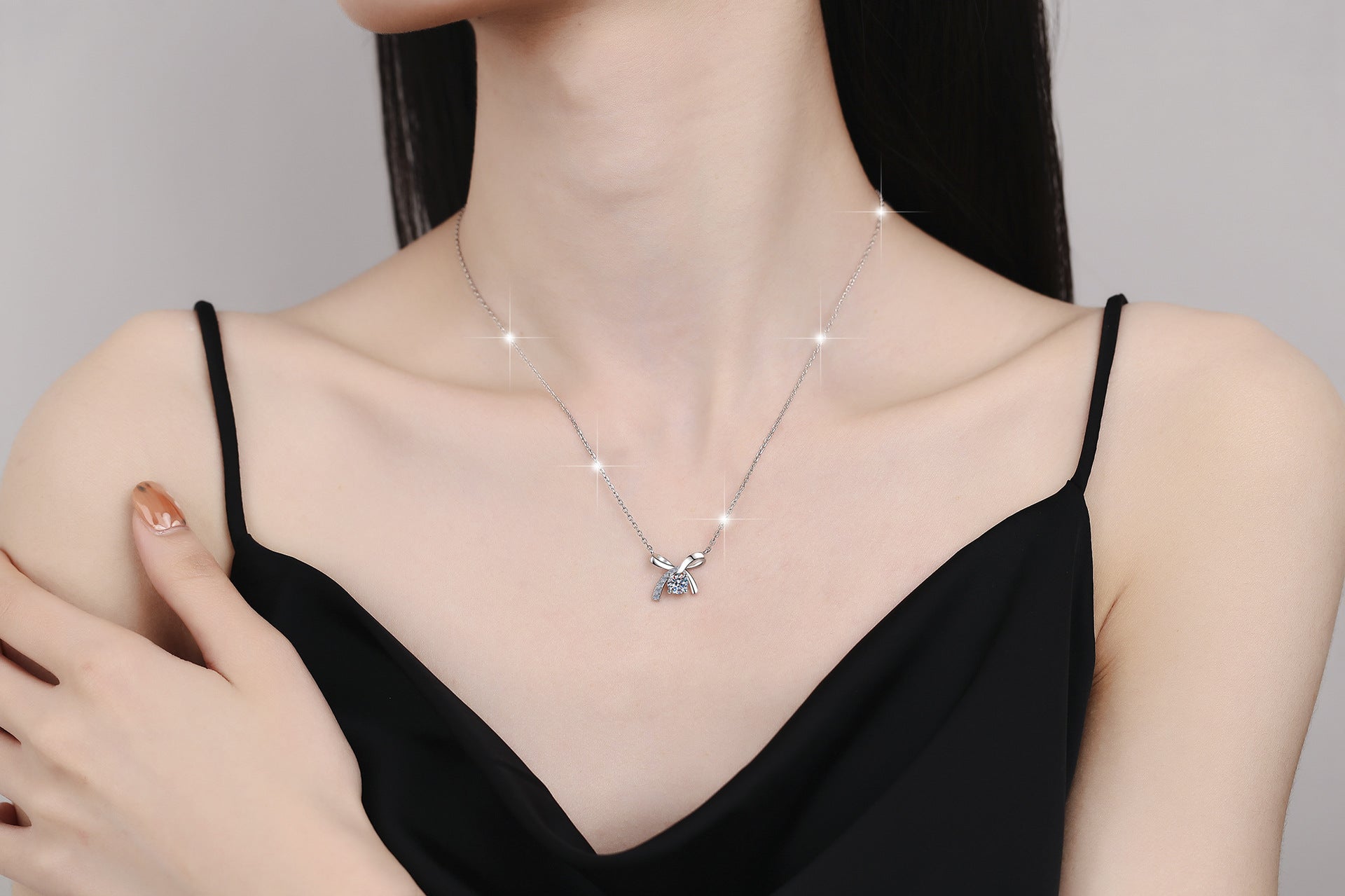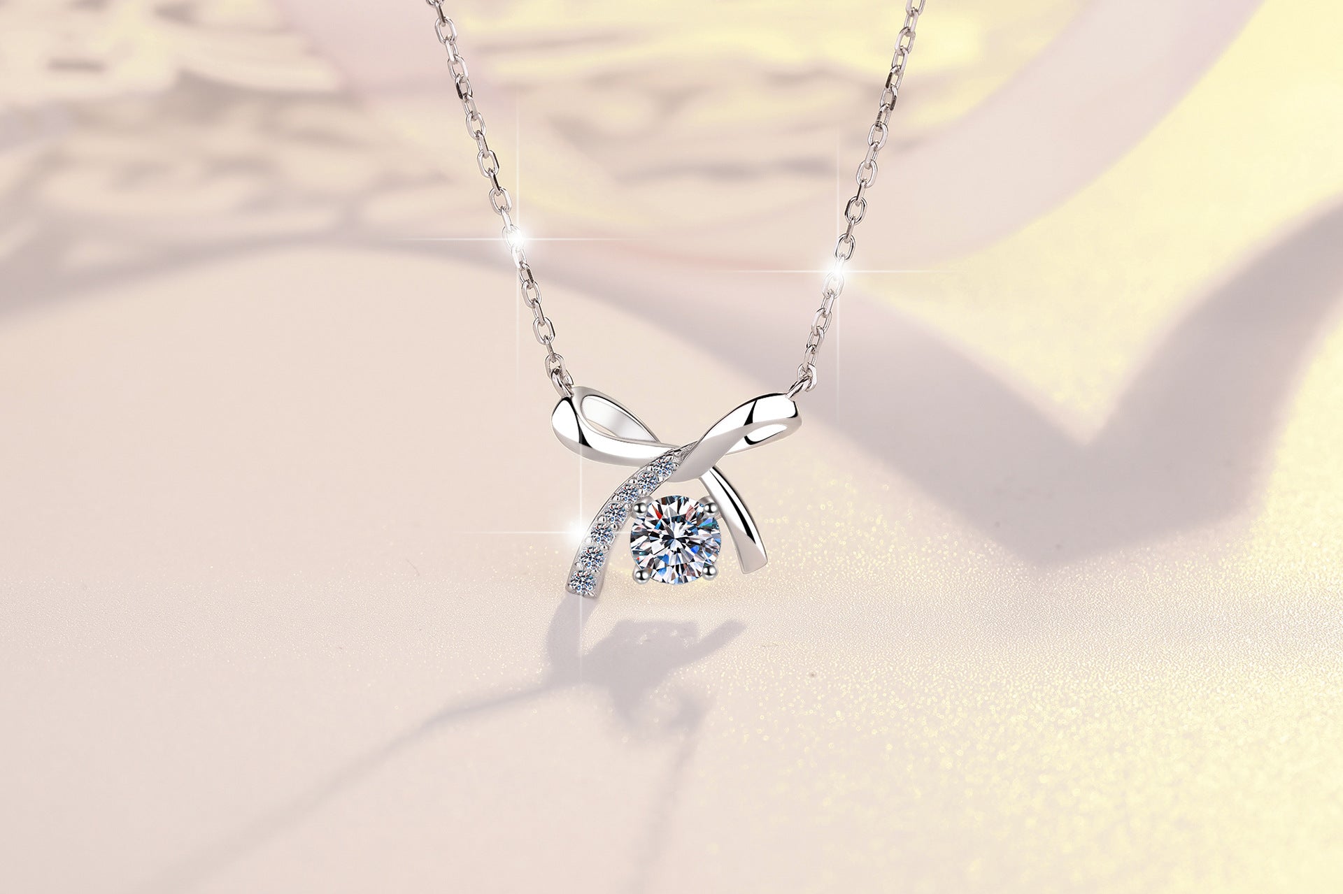 S925 Sterling Silver Necklace for Women with Bowknot Chain, High-end Fashion Jewelry Manufacturer, Moissanite Pendant Wholesale Cross-border