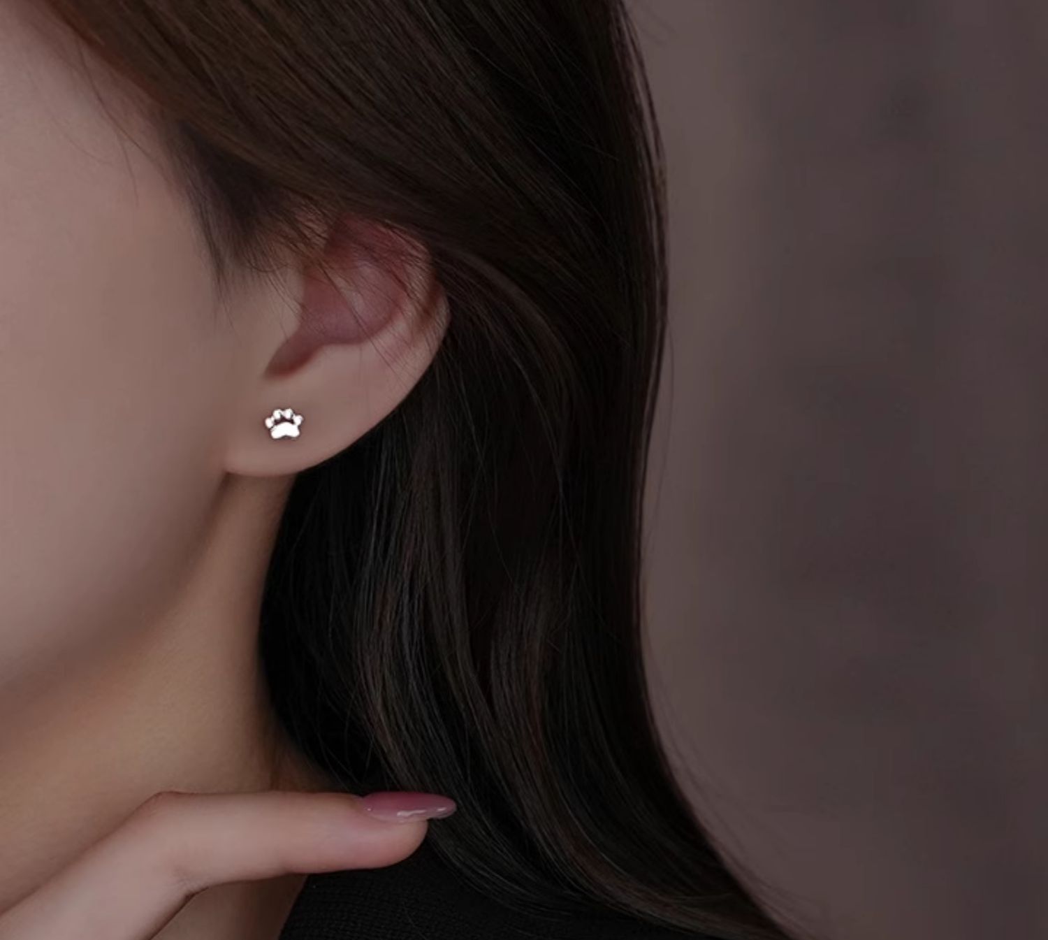 S925 Sterling Silver Needle Small Cat Paw Earrings for Women
