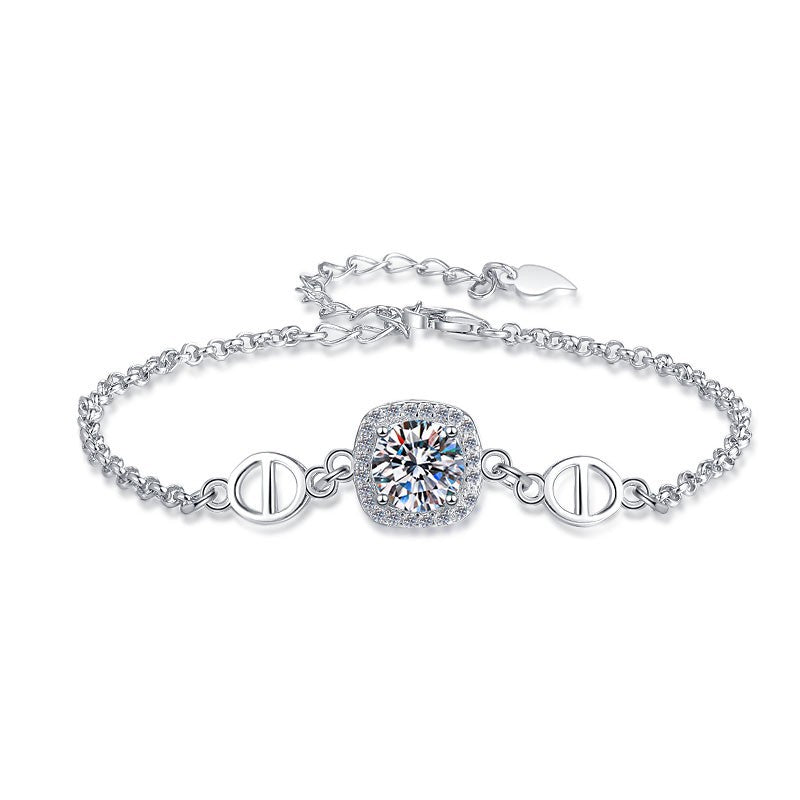 S925 Sterling Silver Women's Bracelet Pig Nose Accessories Square Bangle Southeast Niche Bracelet Moissanite