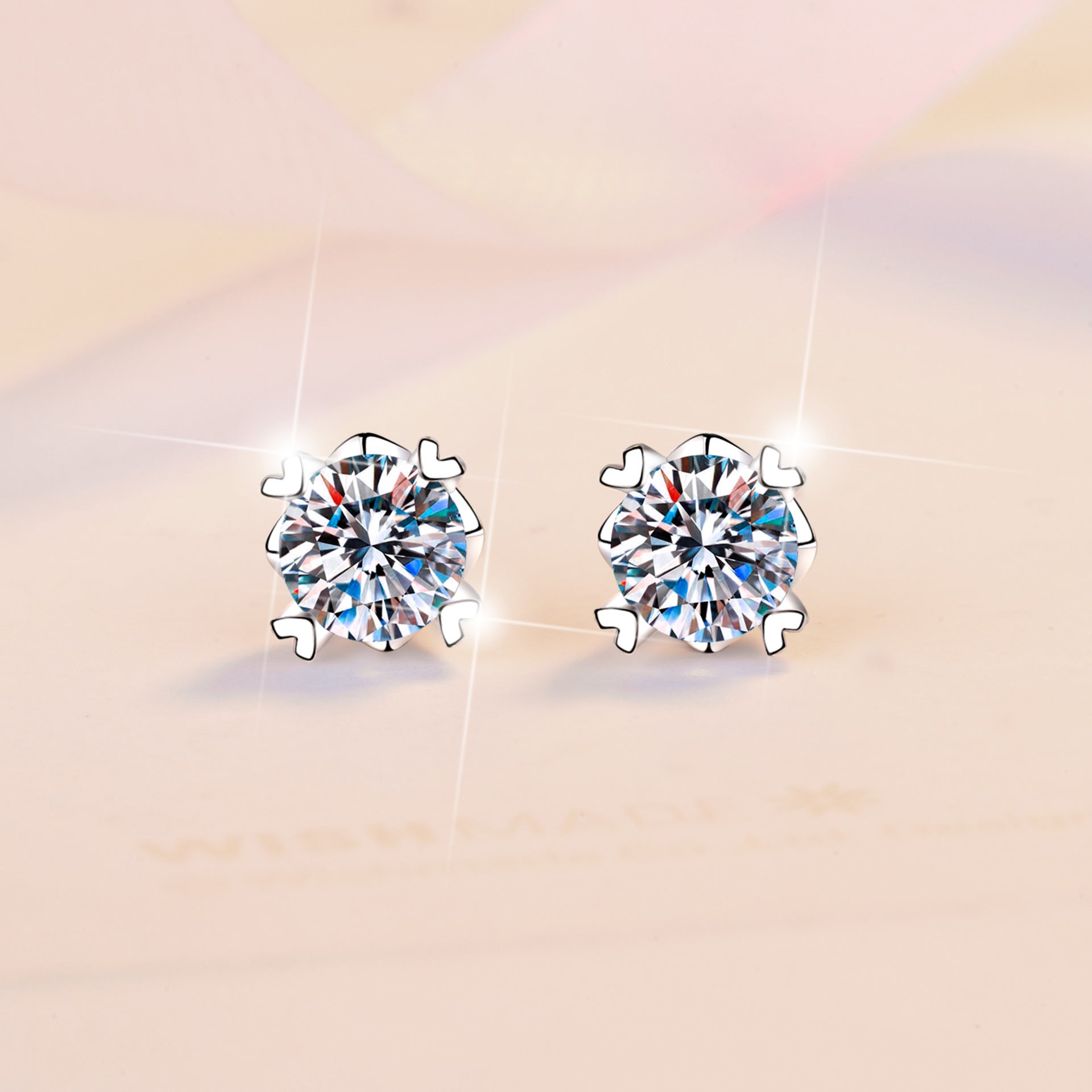 Snowflake Four-Claw S925 Sterling Silver Earrings for Women, Exquisite and Simple Personality, PT950 Plated Earrings with Moissanite