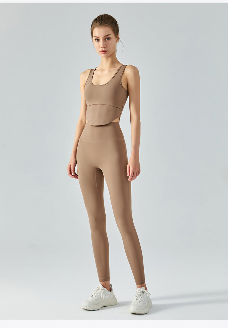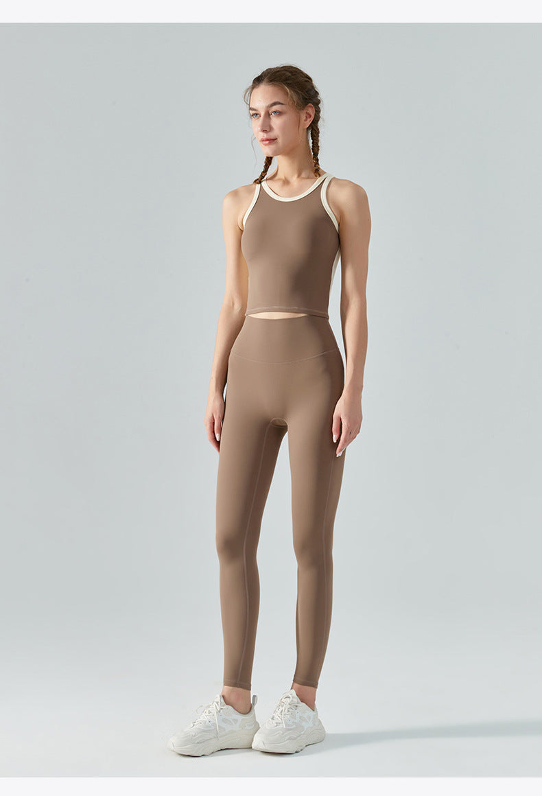 Women's High Waist Yoga Leggings - Double-sided Brushed Booty Lifting Fitness Pants for Running & Sports Green Brown White